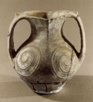 說 明: 泥質灰陶。方口折沿,方徑內(nèi)收,腹圓鼓,平底。造型奇特,裝飾美觀。