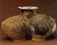 說 明: 細砂質(zhì)黃陶。造型奇特,彩繪華麗。