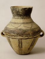 說 明: 泥質土黃陶。鳥紋筆法簡練,姿態(tài)生動。