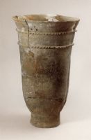 說 明: 砂質紅陶。敞口、深腹斜直壁,圓底,高圈足。