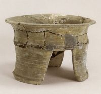 說 明: 泥質(zhì)灰胎,敞口,沿外卷,足表飾兩周弦紋,通體磨光。