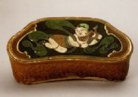 圖片名稱: 三彩釉剔地刻嬰孩紋三瓣花形枕