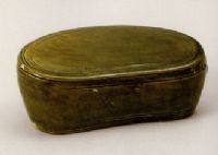 說 明: 胎土堅(jiān)細(xì),呈褐灰白色半陶瓷胎,施深褐色綠釉。