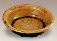 圖片名稱: 鶴壁窯黃釉劃蓮花紋盆