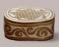 說(shuō) 明: 枕為腰圓形,枕面為水波紋,枕側(cè)飾圈枝紋。