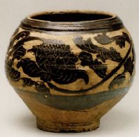 圖片名稱: 褐釉剔粉劃纏枝牡丹紋罐