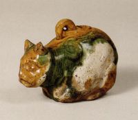 圖片名稱: 三彩釉劃花貓形器