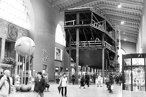 德國斯圖加特城火車站邊的“泰興號”帆船樓展覽吸引了眾多游人。