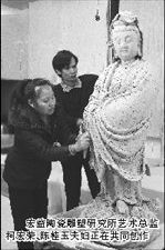 柯宏榮、陳桂玉都是土生土長(zhǎng)的德化人。他們因“瓷”結(jié)緣、因“瓷”而攀上各自的事業(yè)巔峰。柯宏榮在傳統(tǒng)技藝方面受到了工藝美術(shù)匠師的口傳心授,陳桂玉則是接受學(xué)校課堂訓(xùn)練,學(xué)習(xí)西方的雕塑方法,最后兩人都把落腳點(diǎn)放在了德化瓷塑藝術(shù)上,可謂殊途同歸。他們各自發(fā)揮所長(zhǎng),并在此基礎(chǔ)上認(rèn)真研習(xí)中外瓷塑文化,提高瓷塑修養(yǎng)。他們“心往一處想、勁往一處使”必然會(huì)獲得“一加一大于二”的成就。他們?cè)诘禄蓧舷碛惺⒆u(yù)也就成為理所應(yīng)當(dāng)?shù)氖虑榱恕?/p>