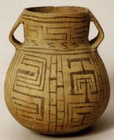說(shuō) 明: 泥質(zhì)褐紅陶。通體用黑彩繪出較為規(guī)整的弦紋與線條雷紋。造型勻稱,裝飾華麗。