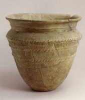 說 明: 泥質(zhì)灰陶。大口、圓唇、短徑內(nèi)收、折肩、深腹微鼓。