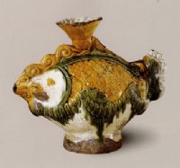 說 明: 整體造型飽滿,施黃、綠、白三色釉彩。
