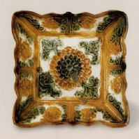 圖片名稱: 三彩釉印牡丹花方蝶