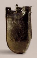 圖片名稱: 綠釉劃花塑像雞冠壺