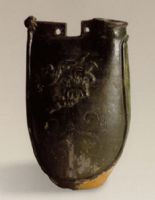 說 明: 紅陶胎,上白色化妝土,施深綠色釉.紋飾生動(dòng),寫實(shí)性強(qiáng).