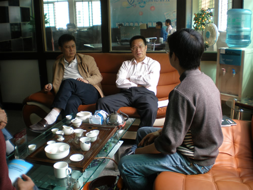4月23日,泉州市科技局黨組成員、紀(jì)檢組長——陳嘉祐與德化縣科技局局長蘇志堅(jiān)等,到中華陶瓷網(wǎng)視察工作,總經(jīng)理柯維太向泉州市科技局領(lǐng)導(dǎo)及德化科技局局長介紹了中華陶瓷網(wǎng)運(yùn)營情況,并介紹旗下平臺中華陶瓷網(wǎng)、《陶瓷之路》、中國瓷都德化、德化陶瓷商城四大平臺情況,當(dāng)陳嘉祐得知中華陶瓷網(wǎng)日前獲得“中國行業(yè)電子商務(wù)網(wǎng)站100強(qiáng)”后,對中華陶瓷網(wǎng)的工作表示肯定。