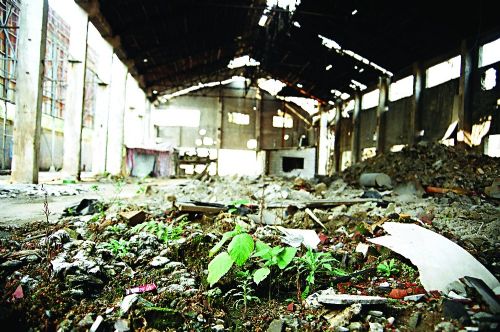 關(guān)閉的陶瓷廠內(nèi)長出的植物。陶瓷廠從停止生產(chǎn)到拆除,經(jīng)過了很長一段時間
