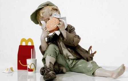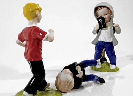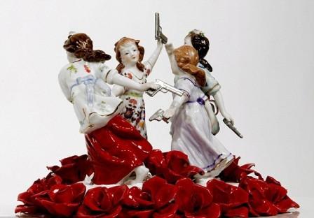 據(jù)英國《每日郵報(bào)》報(bào)道,英國一位設(shè)計(jì)新秀巴福德將廉價(jià)的陶瓷小雕像改造成畫廊爭相收藏的藝術(shù)品,用東方趣味陶瓷來展示西方社會(huì)現(xiàn)象,其中不乏黑色幽默的嘲諷。