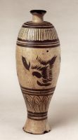 說 明: 通體白釉黑花裝飾,形體修長,畫風(fēng)簡練灑脫。