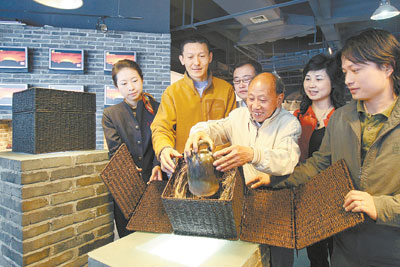 早在唐朝以前,長沙銅官窯陶瓷就面市了,唐朝時達到鼎盛時期。數(shù)千年歷史的長沙銅官窯陶瓷開創(chuàng)了多個世界之最:最早發(fā)明釉下多彩、最早發(fā)明銅紅釉燒制、最早進行釉下彩繪、最早開創(chuàng)模印貼花等等。遺憾的是,銅官窯陶瓷卻一直沒有一個較理想的包裝。省工藝美術(shù)大師,長沙銅官窯陶瓷工藝的唯一傳承人胡武強,幾十年來為此花費不少心血,從紙質(zhì)、鐵板,到木盒,設計了多個包裝,可沒一個令人滿意。去年底,一個偶然機會,’2008北京奧運獎牌設計的主創(chuàng)設計師、中央美院年輕的教授肖勇,了解到“銅官窯”的傳奇故事和得知長沙銅官窯作品沒有理想包裝后,決定帶領自己的設計團隊免費為胡武強老人作品設計包裝。經(jīng)過幾個月的精心設計,這一包裝新款最終誕生。
