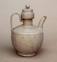 圖片名稱: 白釉雕劃牡丹蓮瓣紋帶蓋注壺