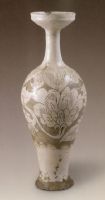 圖片名稱: 白釉剔粉雕劃牡丹花盤口長徑瓶