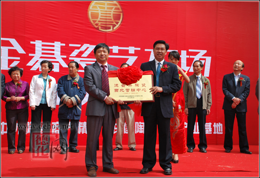 縣委常委、宣傳部長涂健圻為中國瓷都·德化迪云舟陶瓷西北營銷中心授牌、縣政府副調(diào)研員黃發(fā)建代表陶瓷產(chǎn)區(qū)講話并向金碁瓷藝廣場(chǎng)贈(zèng)送禮品,中國陶瓷工業(yè)協(xié)會(huì)、陜西省、西安市等領(lǐng)導(dǎo)出席授牌儀式。