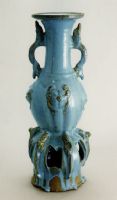 圖片名稱: 鈞窯天藍釉帖花獸面紋螭耳連座瓶