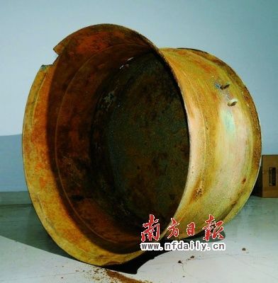 2009年4月13日,廣東省陽(yáng)江市大八鎮(zhèn)周亨村發(fā)現(xiàn)的古代銅鼓。