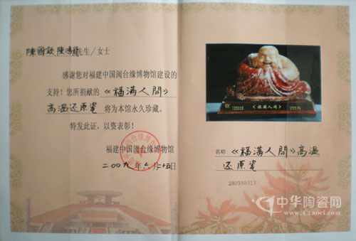 《福滿人間》福建中國閩臺緣博物館收藏證書