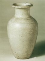 撇口,細(xì)頸,豐肩,平底,肩部以下漸收斂,淺刻弦紋數(shù)道。造型豐滿端莊,比例適調(diào)。通體施白釉,釉色潔白潤澤。此器是一件典型的唐代邢窯制品,唐代陸羽稱邢窯制品“類銀類雪”。主要是贊譽(yù)其釉飾的白潤潔凈,說明邢窰制品在當(dāng)時(shí)已得到世人的贊美。邢窯制品流傳至今的器物多為盤或碗,瓶類制品較為稀少,此瓶屬邢窯瓶類制品中的精品,因而顯得更為珍貴。