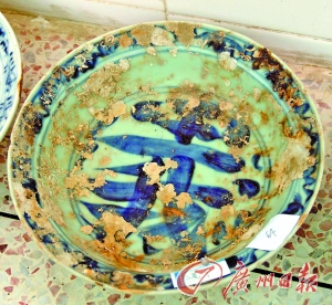南澳沉船上的文物。(通訊員徐旭宇攝)——有精美仕女圖案的“汕頭器”。