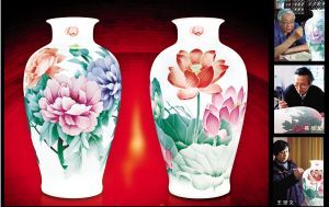 新中國成立后,醴陵“官窯”按照國家要求陸續(xù)燒制成功少量特貢人民大會堂、國家領(lǐng)導(dǎo)人使用和作為國禮贈送給外國元首的瓷器,這些稀有的國瓷在60年中充當(dāng)了“國家的名片”,在世界范圍內(nèi)代表中國的形象。其中陳揚龍大師手繪“牡丹瓶”尤為突出,曾被多次選用,被稱為紅色“官窯”中的“國寶貢瓷”。如今,60周年大慶,醴陵“官窯”被賦予了更神圣的使命--燒制新中國60周年唯一的“特貢國瓷”。