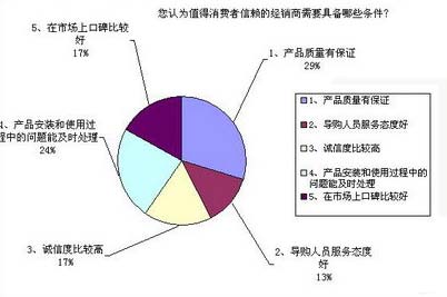 總結起來,網友們所信賴的經銷商必須具備以下條件:第一,經營的產品品質有保證;第二,服務及時;第三,誠信度高,口碑好;第四,導購人員服務態(tài)度好?偟膩砜,都是最基本的要求。