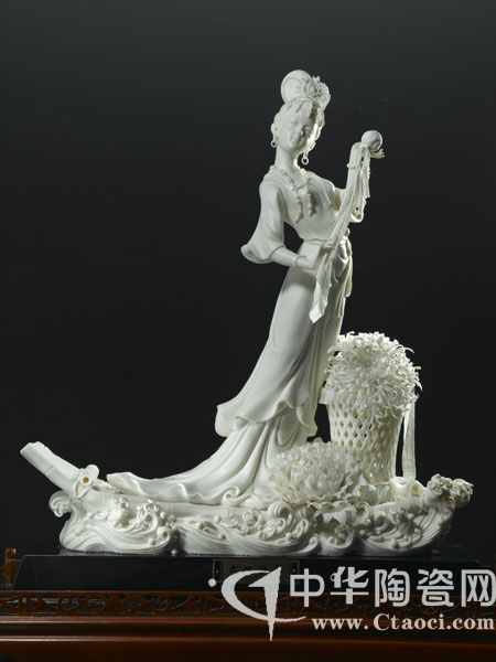 比如《和諧共鳴》,她是以德化優(yōu)質(zhì)瓷泥為載體,演繹出了和諧之聲。一位美麗的飛天女與古典樂(lè)器琵琶緊緊融合在一起,飛天女吹著笛子,笛聲悠揚(yáng)飄蕩,與琵琶聲產(chǎn)生共振、共鳴,奏出了和諧之聲,昭示著渴望世界、社會(huì)的和諧,家庭的和諧。