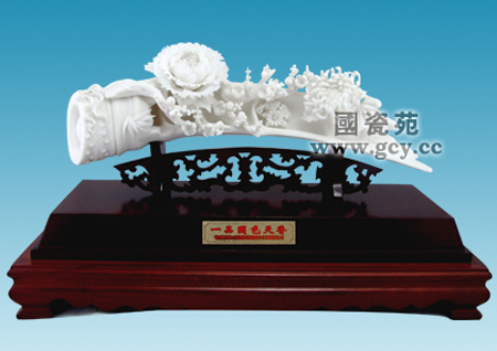 近日,安徽福建商會舉行成立一周年慶典大會,國瓷苑鄭少偉創(chuàng)作的兩件瓷雕精品《日月同輝》和《一品國色天香》被商會選為禮品,分別贈送給安徽省人民政府和合肥市人民政府。安徽福建商會會長吳端革表示:“我們把它贈送給安徽省人民政府,代表著促進兩省以及福建整個地區(qū)的經(jīng)濟共同繁榮和發(fā)展。”
