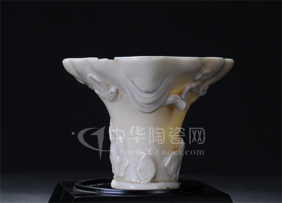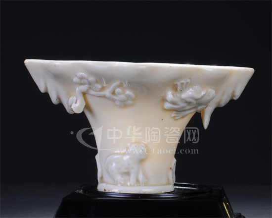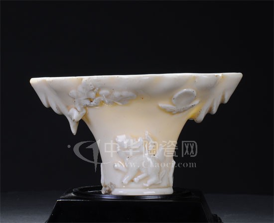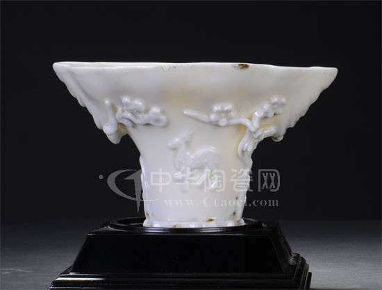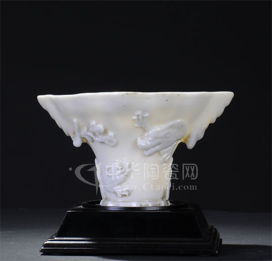 德化龍虎紋杯,共兩件,一為孩兒紅瓷,一為象牙白瓷,胎薄細(xì)膩,雕像栩栩如生,可謂是奇珍異品。龍虎紋杯口徑為13.8cm,高為10.2cm,大約呈橢圓形,雕有各種動(dòng)植物等浮雕紋飾。傳統(tǒng)觀念認(rèn)為,杯的上面部分為天,下面部分為地或海,因此,此龍虎紋杯也不例外,上面部分沿口雕有松樹、梅花樹、龍頭等,下面部分雕有老虎、鹿、鯉魚等,采集世間美好的事物表達(dá)最美好的祝愿。潘先生在收藏此珍品后激動(dòng)地帶到《收藏盛世》進(jìn)行鑒定,被鑒定為明末的藝術(shù)品,在德化窯中之窯變?yōu)橘摺?/p>