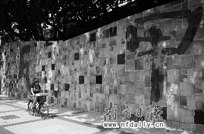 江灣三路上的陶瓷壁畫“石灣瓦甲天下”顯示了石灣陶瓷藝術(shù)發(fā)展的源遠(yuǎn)流長。
