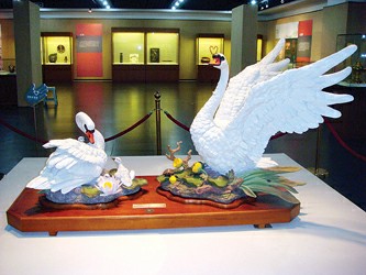 有關中美“破冰之旅”的歷史記載,總免不了提到它們的見證者——1972年2月美國總統(tǒng)尼克松首次訪華時贈給毛澤東主席的國禮“瓷塑天鵝”。昨天,這一“天鵝”的復制品隨同其他121件珍貴國際禮品,出現(xiàn)在了由閔行區(qū)博物館與國際友誼博物館聯(lián)合主辦的“至尊國禮——中華人民共和國國際禮品展”上。