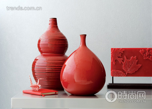 紅色的八仙瓶與福壽瓶于極簡的家居環(huán)境中,漆光的質(zhì)感與色澤折射成為房間中的亮點。一只小小的千紙鶴將冷靜的氛圍變得富有生氣。