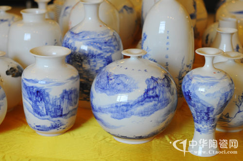 在陶瓷上作畫與宣紙是兩種截然不同的創(chuàng)作載體,對當(dāng)代國畫名師來說是一種新的挑戰(zhàn)與體驗。中國美協(xié)理事、安徽省美協(xié)副主席張松說:“在陶瓷上繪畫要比宣紙上繪畫難,不是那么容易。但是,在陶瓷上繪畫同時也能掘發(fā)創(chuàng)作家的激情,一旦激情被掘發(fā)美術(shù)繪畫就能在陶瓷上淋漓盡致地體現(xiàn)。”