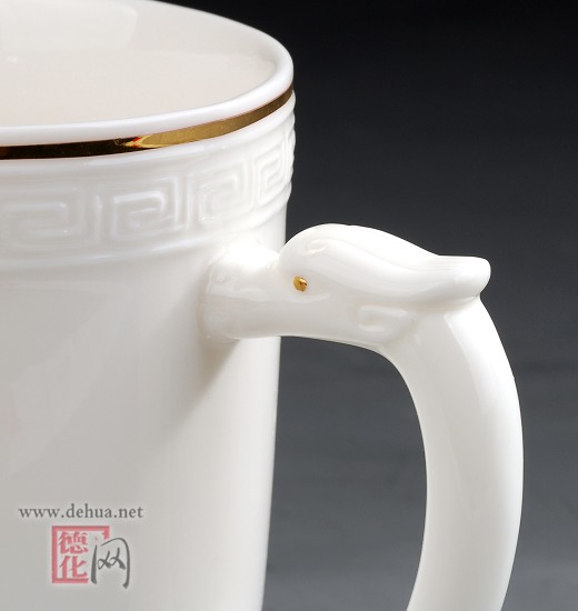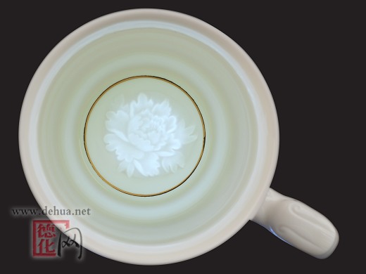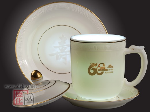 為獻(xiàn)禮新中國甲子華誕,陳仁海創(chuàng)作的《和諧世界》元首杯系列,以“純手工雙層鑲接陰陽精雕”專利技法、采用國家非物質(zhì)文化遺產(chǎn)的德化窯傳統(tǒng)燒制技藝,經(jīng)二次高溫?zé)啤?4K純金鑲制,底部打造“玉璧底”,上部浮雕如意回紋,寓意同一個(gè)世界,同一個(gè)夢(mèng)想;通體如脂似玉,珠聯(lián)璧合,雍容華貴,時(shí)尚經(jīng)典。最奇妙最奇特的是雙層雙面杯底的漢書“和”字和“牡丹”、杯托瓷盤的天下第一“壽”字和天下第一“福”字,以及“壽星”圖案,在光的照射下,更是栩栩如生;用手指輕摸“和”字或“福”字之上,內(nèi)底的牡丹或壽桃即刻燦若胭脂,變幻得楚楚動(dòng)人,可細(xì)細(xì)把玩,令人愛不釋手。作品一經(jīng)問世,即獲得至尊國禮的殊榮,敬贈(zèng)友好國家之元首,被譽(yù)為“元首杯”。