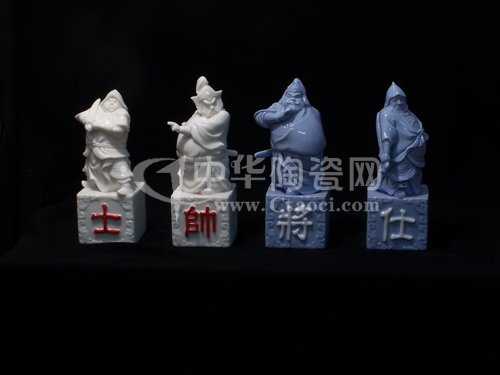 這套“模擬人物陶瓷象棋”以溫潤如玉的“中國白”為胎體,瓷質(zhì)堅(jiān)韌厚實(shí),釉面瑩潤透亮,手感極好。象棋分為白、蘭兩色區(qū)分兩軍,32個(gè)棋子,造型極為別致、生動(dòng),不同的人物各展形態(tài),栩栩如生、鬼斧神工,這是象棋制作的一大難點(diǎn)。
