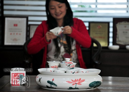 記者看到,“歲寒四君子”的梅、蘭、竹、菊成為德化瓷器創(chuàng)作的新題材。一套普通的茶具,畫上傲霜斗雪的梅花,便具有了“梅花歡喜滿天雪,留取清白在人間”的雋永意境,在休息喝茶之中起到潛移默化、潤(rùn)物無(wú)聲的效果。孤標(biāo)亮節(jié)的菊花、剛直豪邁的青松與德化陶瓷相結(jié)合,成了中華民族不畏強(qiáng)權(quán)、不屈不撓精神的體現(xiàn)。高雅有節(jié)的綠竹,激勵(lì)著黨員干部要像竹子一樣虛懷若谷、剛勁有節(jié)。繪有“出污泥而不染,濯清漣而不妖”的荷花圖案的杯子,配以“清茶甘甜可口,廉氣清香潤(rùn)心”的格言警句,成為黨員干部作為激勵(lì)自己潔身自好的座右銘。