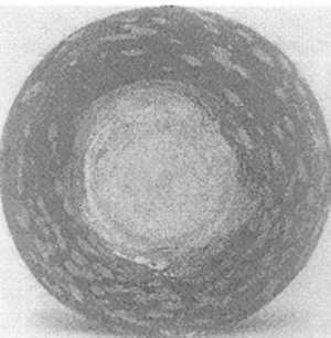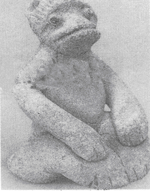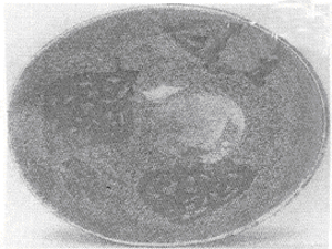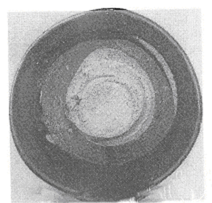 晚期仿品吸取以往經驗,有埋人土中“過蝕”、在成品上涂膠過火仿土銹制造假象者。土銹靠膠粘附,干燥時無異樣反應,但見水易化,甚至脫落,用手指沾水,哪怕沾點唾沫涂于銹面,手指沾有土色者為人為土銹。