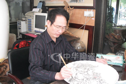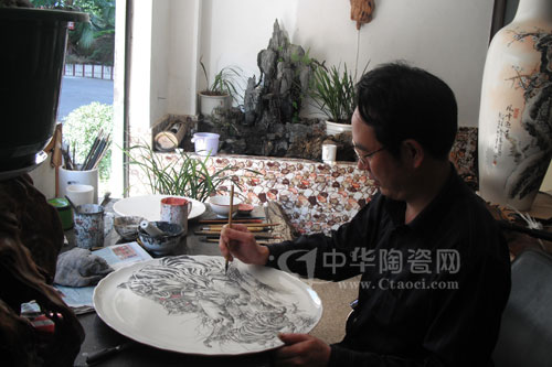 陳行一介紹說(shuō),陶瓷繪畫(huà)受工藝、器型、材質(zhì)等方面的制約,與宣紙相比難度要加大,要設(shè)法發(fā)掘陶瓷繪畫(huà)潛在的表現(xiàn)力,必須結(jié)合器形進(jìn)行合理的構(gòu)思、布局,揚(yáng)長(zhǎng)避短,讓陶瓷亮麗的材質(zhì)與畫(huà)面有機(jī)的結(jié)合起來(lái),在有限的瓷器里創(chuàng)作出無(wú)限的境界。還介紹說(shuō),繪畫(huà)講究筆墨線條等的對(duì)比變化,例如粗細(xì)、疏密、虛實(shí)、濃淡等,從而產(chǎn)生線條的節(jié)奏韻律,講究“氣韻生動(dòng)”、“以形寫(xiě)神”、“骨法用筆”,以渾然天成、本色自然、含蓄蘊(yùn)藉為品位,遵循“作品妙在似與不似之間,大似為媚俗,不似為欺世”的創(chuàng)作原則。