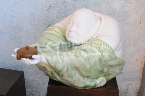 藝術(shù)來(lái)源于生活,而又高于生活。顏松柳,是在一次與友人的閑聊中,獲得靈感,憑著對(duì)友人的形態(tài)印象和交談過(guò)后的心得,設(shè)計(jì)了《求茶》。作品通過(guò)表現(xiàn)人和物之間的對(duì)話與交流,以求“味”和“心”的最高享受。求茶的境界就是求“和”,“和”意味著天和、地和、人和;意味著宇宙萬(wàn)物的有機(jī)統(tǒng)一與和諧。整件作品通過(guò)高溫結(jié)晶窯變釉的顏色變化,表現(xiàn)出求茶過(guò)程中人與物的共融,并因此產(chǎn)生實(shí)現(xiàn)天人合一之后的和諧之美。茶中有道,道中有茶,是物質(zhì)與精神高度統(tǒng)一的結(jié)果。(小俠、小米)