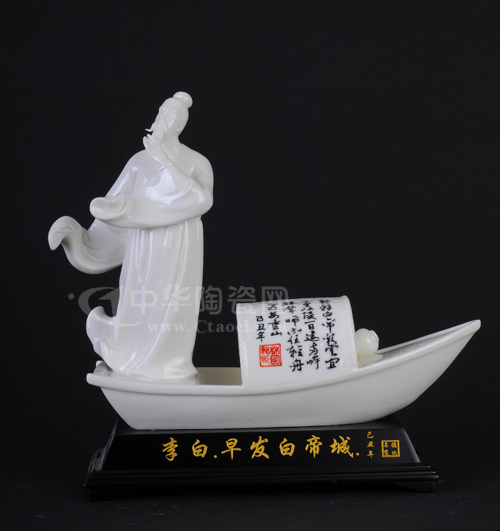 李白立于船尾綏須微抬頭,似在吟詩,似在觀賞遠(yuǎn)路美麗風(fēng)景,衣服隨風(fēng)飄揚(yáng),神態(tài)形象生動,逼真?zhèn)魃瘛W髌吩谠趥鹘y(tǒng)技法的基礎(chǔ)上結(jié)合現(xiàn)代理念,線條簡潔、流暢,瓷質(zhì)潔白,瑩潤透亮,令人愛不釋手,在福建省第五屆福建省工藝美術(shù)精品“爭艷懷”大賽中榮獲優(yōu)秀獎。(小俠、小米)