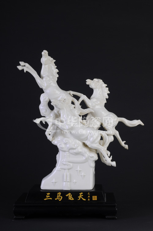 神舟七號(hào)載人航天飛行的圓滿成功終于現(xiàn)實(shí)了中華民族漫步太空的夢(mèng)想,為中華民族歷史譜寫了美好篇章。福建省德化縣藝韻陶瓷研究所副所長(zhǎng)、福建省工藝美術(shù)師林國(guó)龍以“中國(guó)白”瓷雕的形式永遠(yuǎn)記下了這一輝煌的時(shí)刻——《三馬飛天》。
