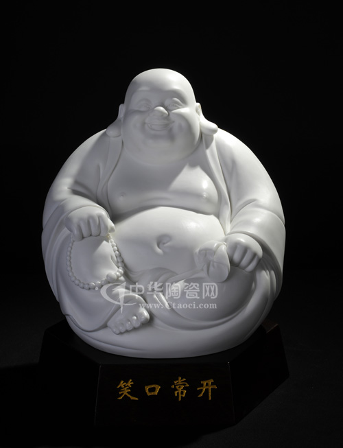 我們來到他的瓷塑創(chuàng)作室里,他正在創(chuàng)作彌勒,他高興地拉著我們說:“今天下午,我又有了新的突破,你們看這彌勒笑得是不是比原來的更燦爛。”他自嘲說這是在笑他自己。